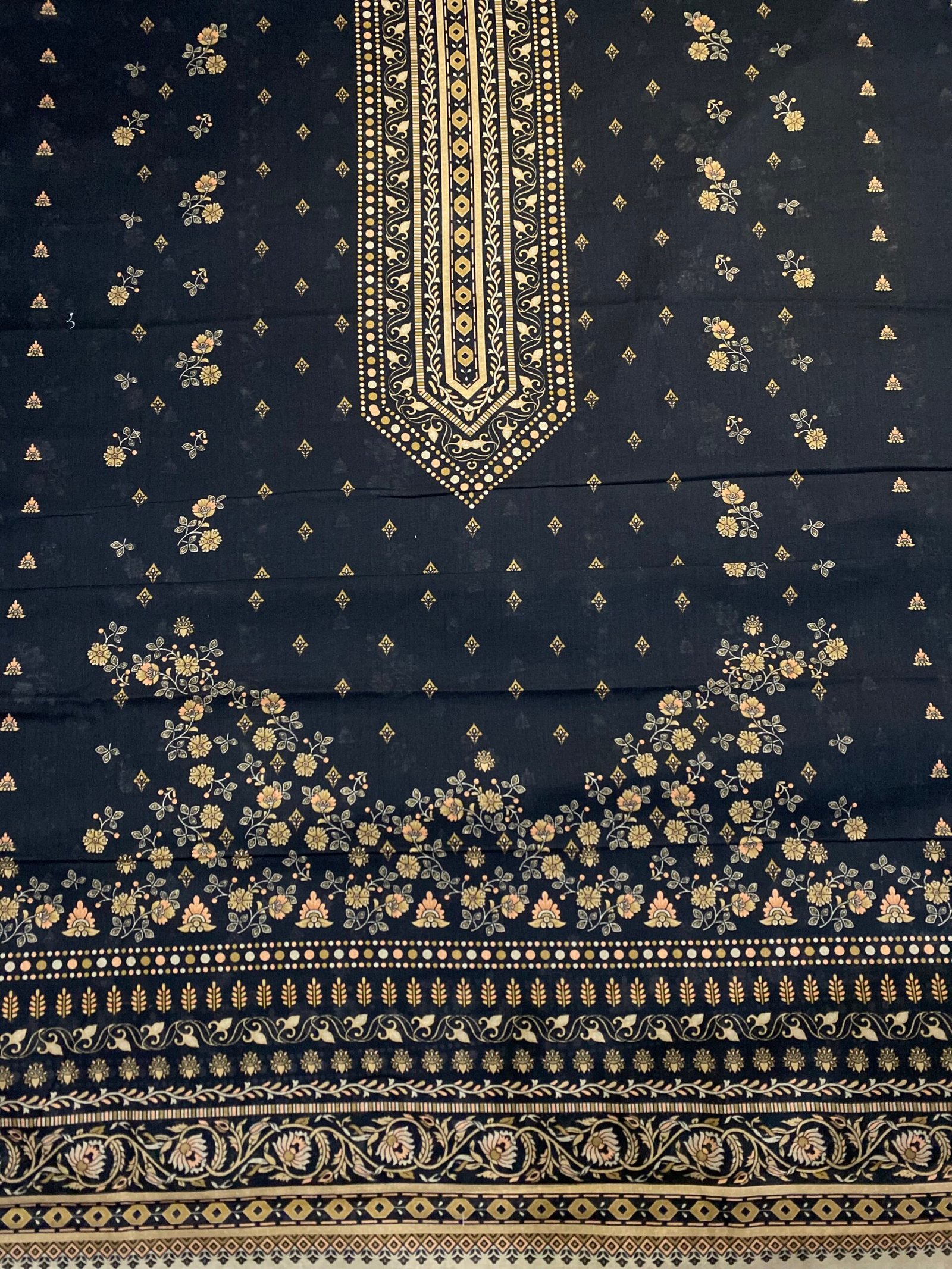 Black Gold Embroidered Unstitched 3-Piece Suit