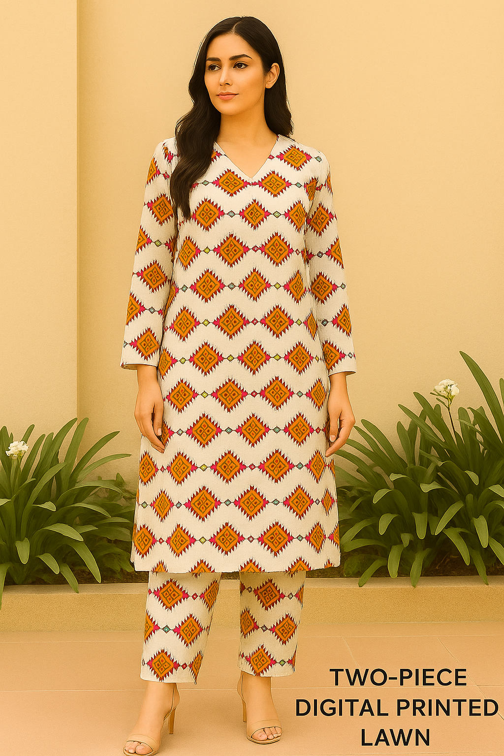 Ivory Bloom brings refined elegance to your wardrobe with its soft white base and delicate floral digital prints. This 2-piece unstitched lawn suit is crafted from breathable fabric, perfect for warm days and graceful styling. Includes shirt and trouser fabric for a timeless Pakistani look.