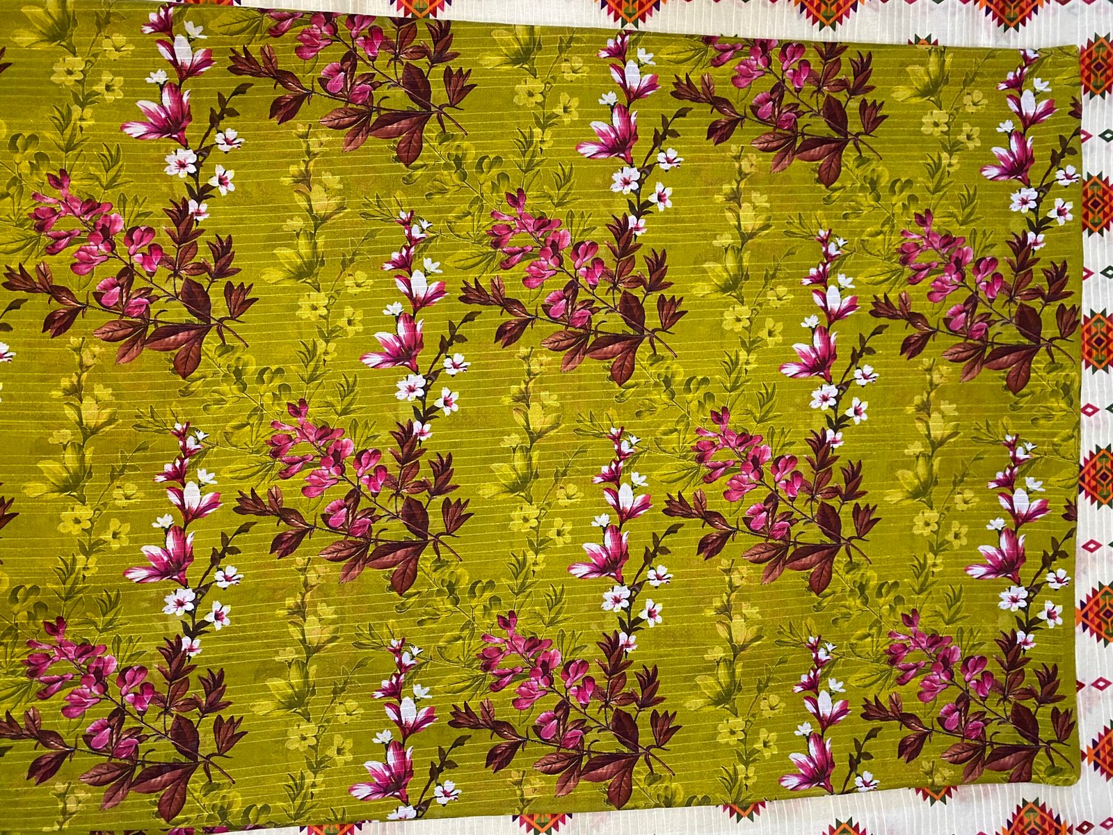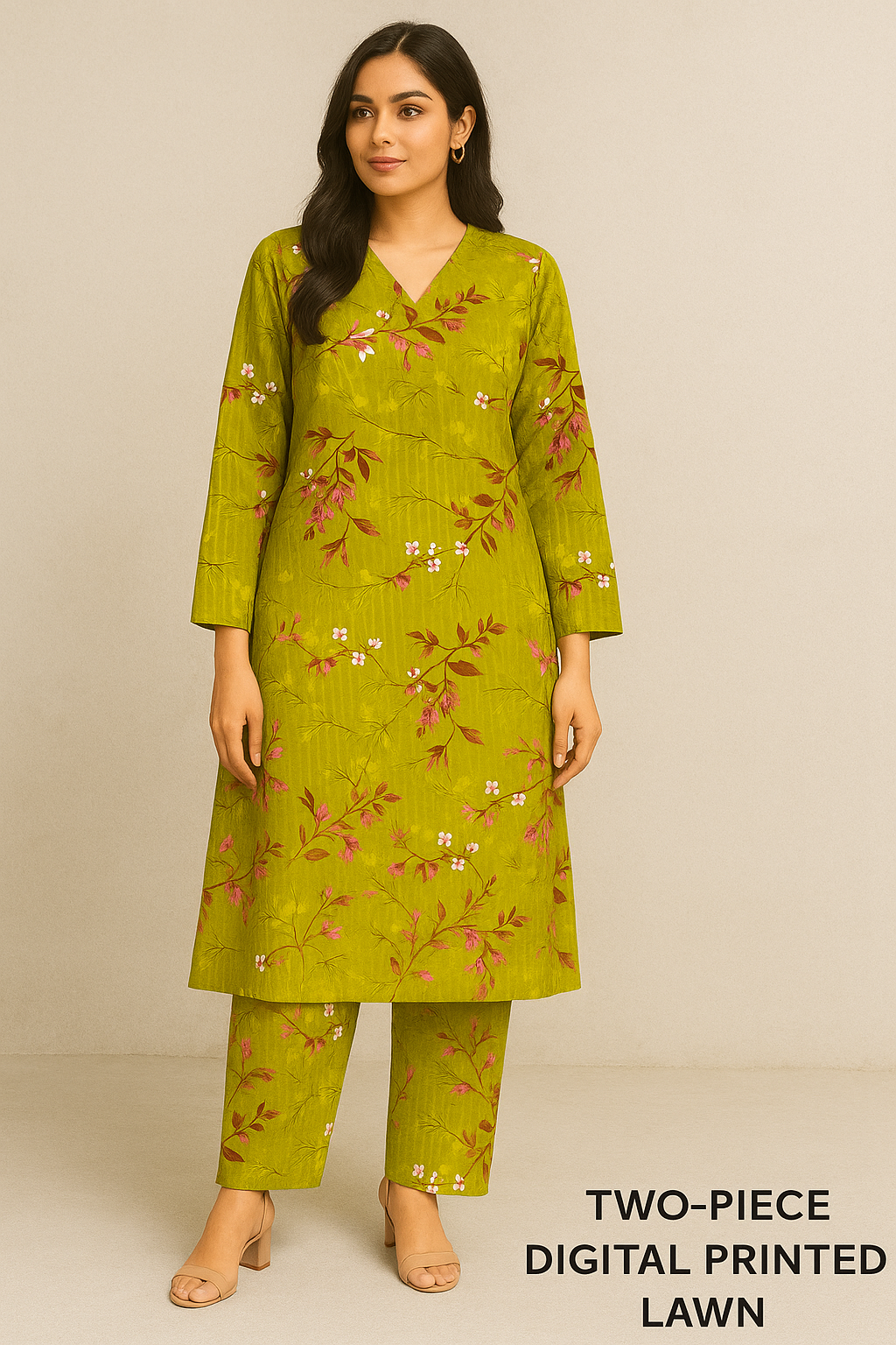 Embrace timeless elegance with our Mehendi Bloom unstitched 2-piece lawn suit, featuring a rich mehendi green base adorned with delicate pink floral prints. Crafted from lightweight, breathable fabric, it’s perfect for summer styling with a graceful Pakistani touch. Includes shirt and trouser fabric